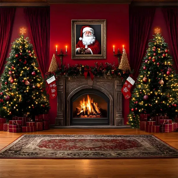 Traditional Christmas Fireplace Scene Wallpaper -