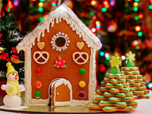 Decorated Gingerbread House Closeup Wallpaper -