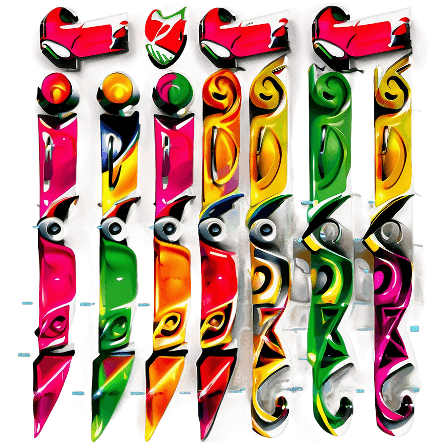 Abstract Vector Art Featuring Colorful, Totem Pole-like Designs With Vibrant Patterns And Glossy Metallic Effects.