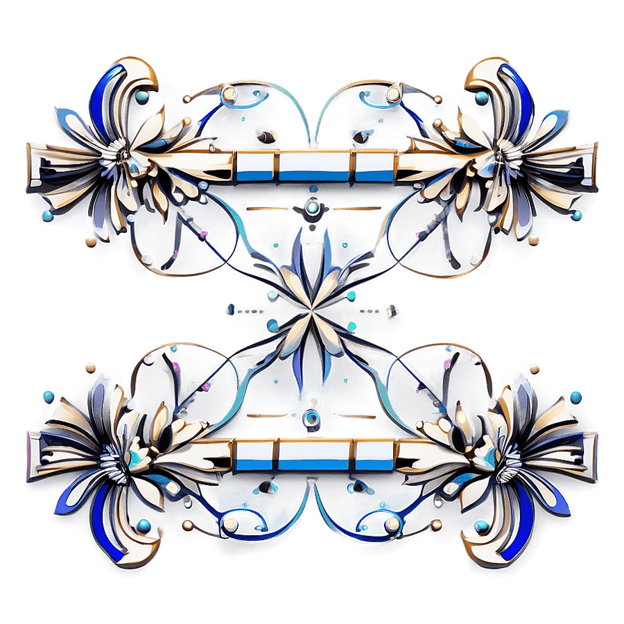 Symmetrical Abstract Floral Vector Design With Blue And Gold Elements On A Dark Background.