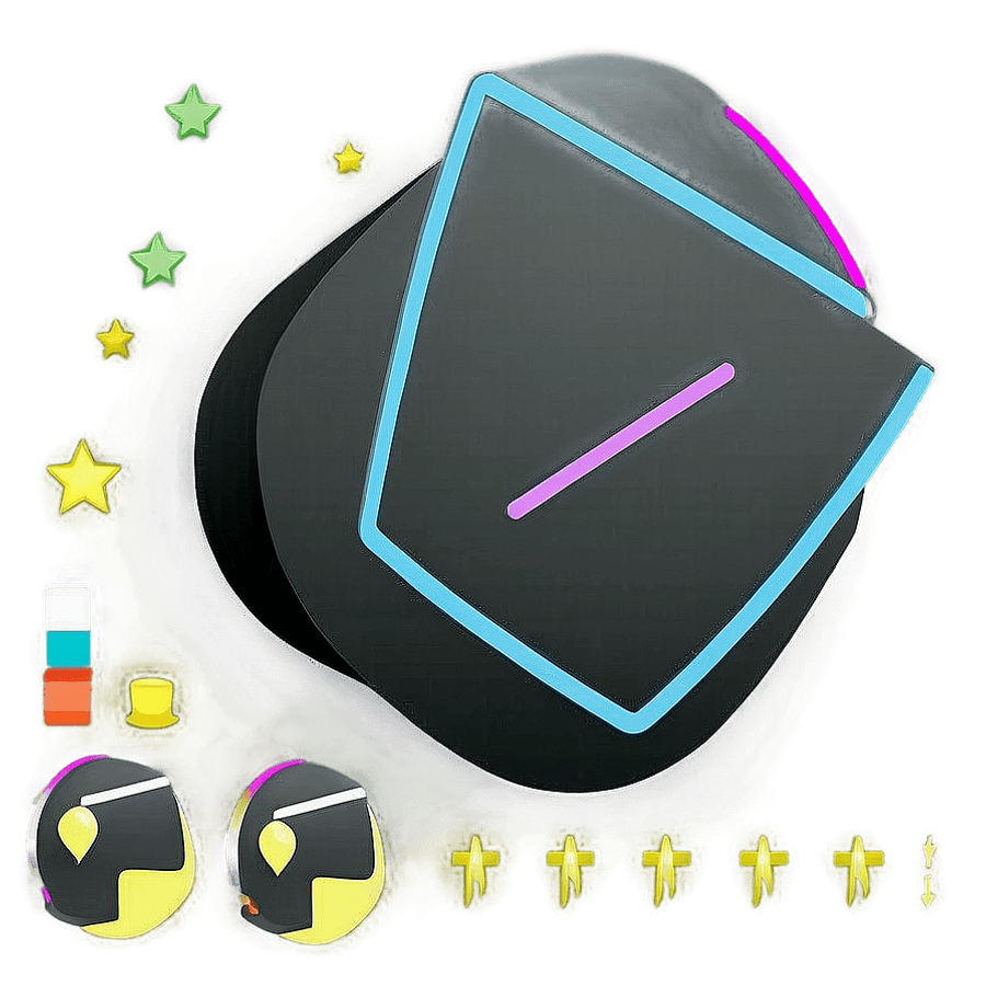 A Stylized Vector Graphic Of A Shield With Neon Outlines, Accompanied By Stars, Erasers, And Headphones, Set Against A Dark Background.