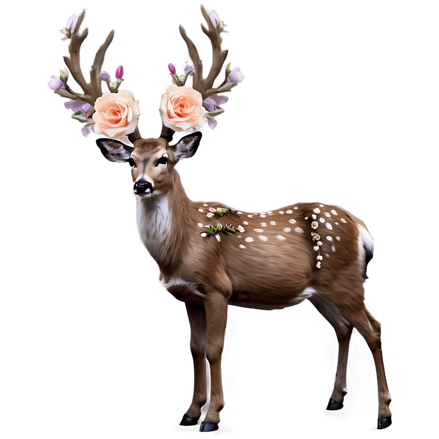 Deer With Flowers Crown Png 05062024 PNG