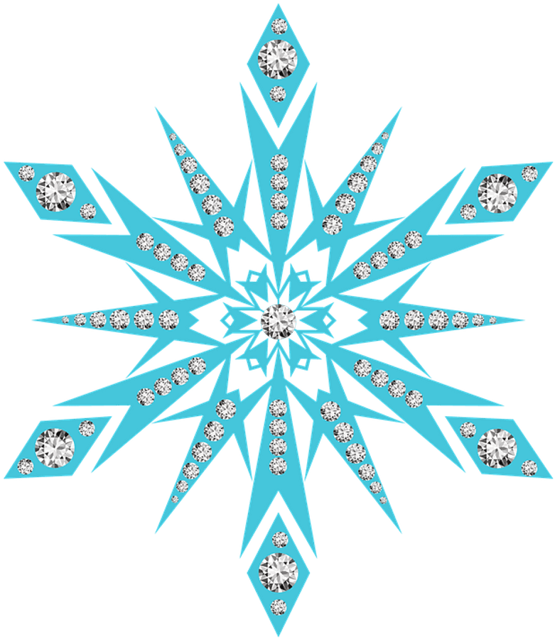 A Stylized Snowflake Graphic With Diamond Embellishments On A Grey Background.