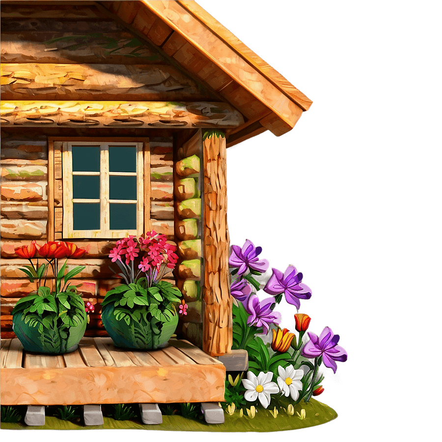 Log Cabin With Flower Garden Png 06122024 PNG