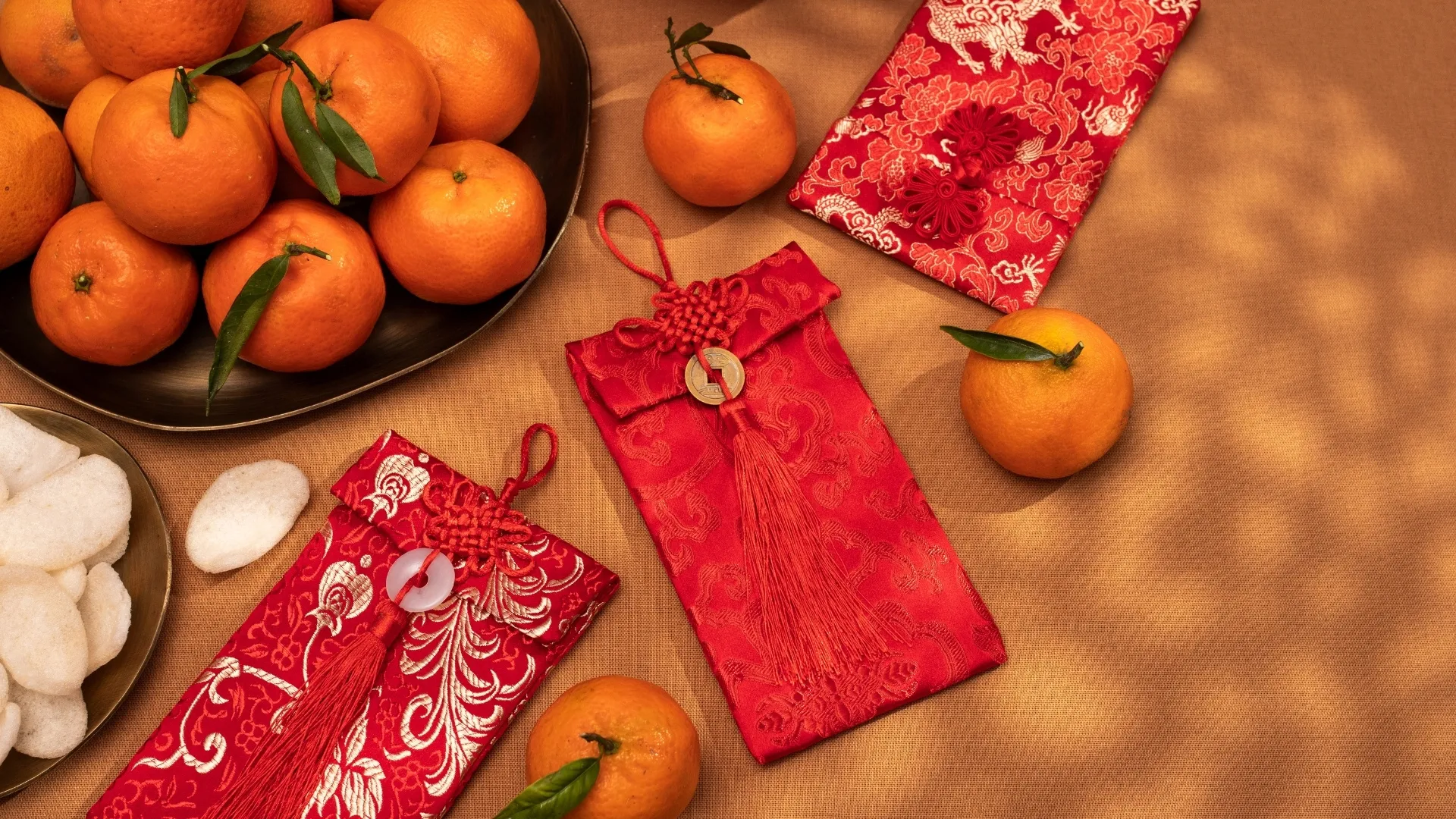 Red Envelopes With Tangerines Wallpaper