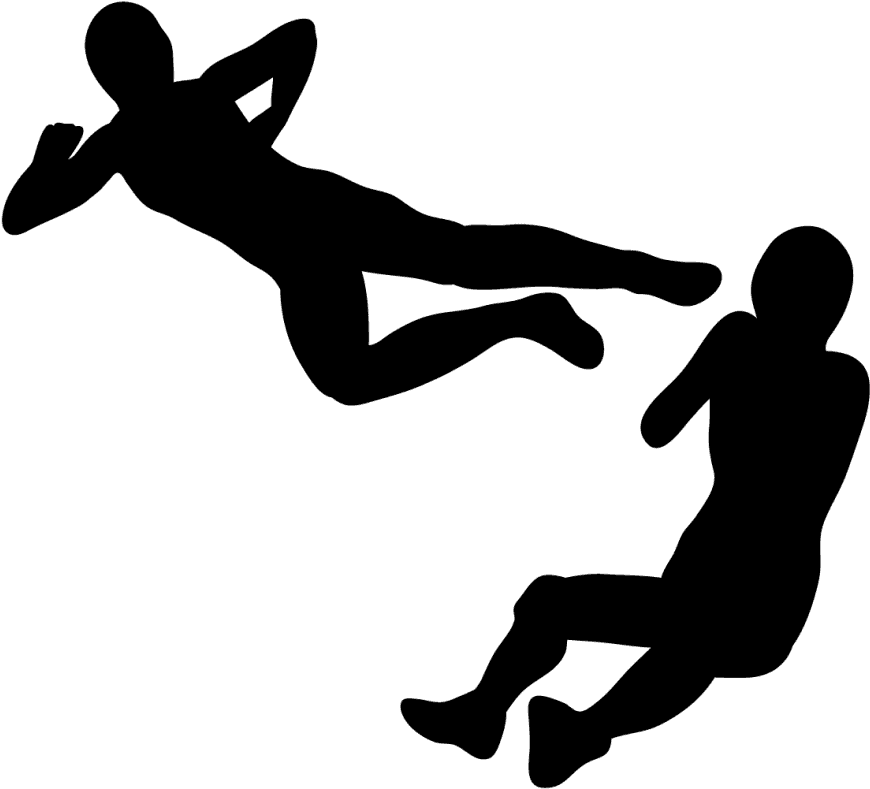 Two Silhouettes, One Appearing To Fly Like A Superhero And The Other Depicting A Person Falling Or Floating.