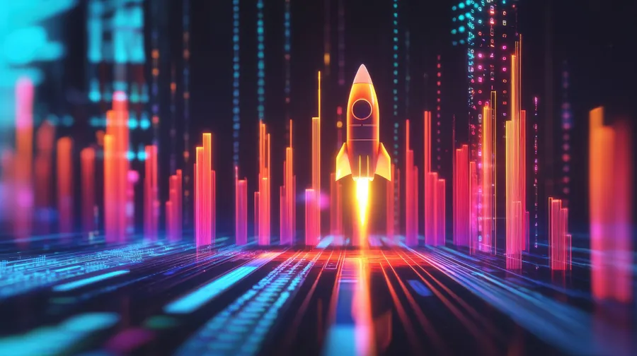 Rocket,launch,startup,data,digital,futuristic,technology,business,finance,cyber,growth,analytics,progress,investment,economy,innovation,high-tech,stock Market,success,neon