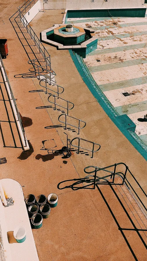 An Empty Pool With Peeling Paint And Rusted Railings Shows Signs Of Long-term Neglect And Abandonment.