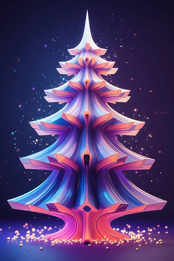 Abstract,neon,tree,futuristic,geometric,symmetrical,vibrant,glowing,particles,dark,background,layers,depth,complex