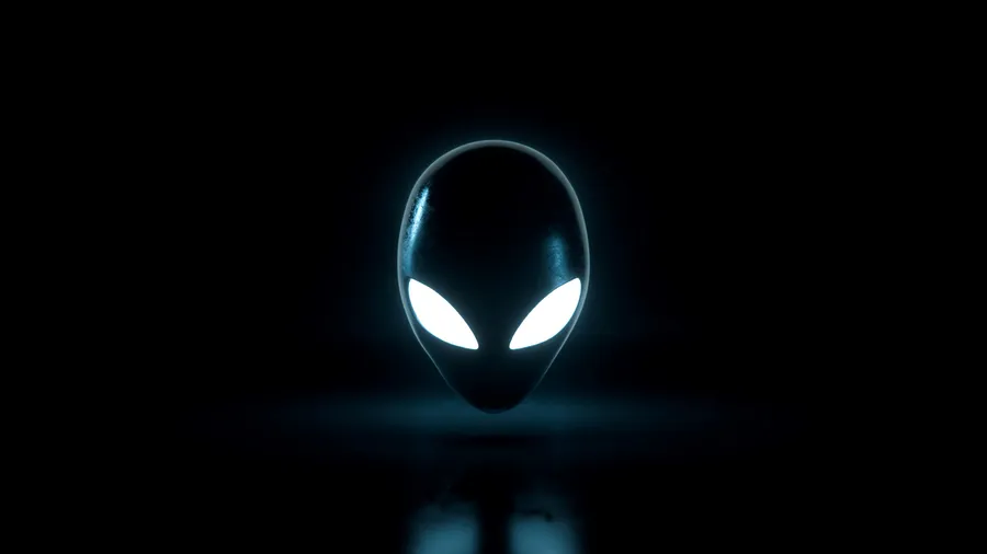 A Glowing Extraterrestrial Head Symbol With Illuminated Eyes On A Dark Background, Reflecting On A Surface Below.