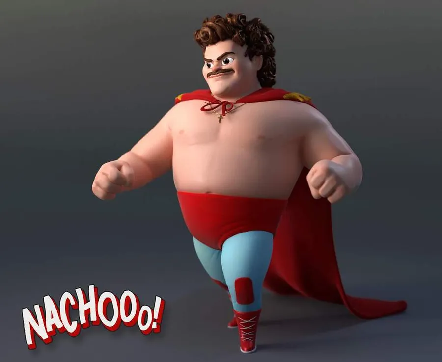 A Stylized 3d Animated Character Resembling A Luchador, With A Red Cape, Blue Tights, And Red Boots, Is Depicted Mid-stride With The Word "nachoo!" Below.