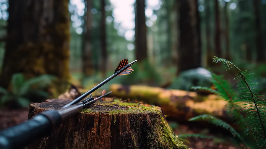 Archery,arrow,forest,stump,woodland,nature,outdoor,moss,fletching,sport,precision,target,wilderness,adventure,equipment