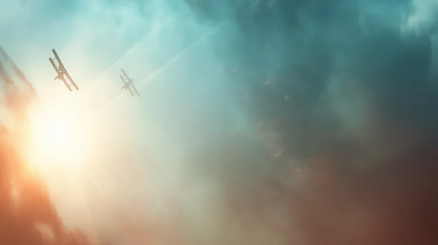 Bi-plane,aviation,sky,clouds,sunbeams,flight,vintage,historical,airplane,freedom,adventure,aerial,nostalgia,atmosphere,transportation