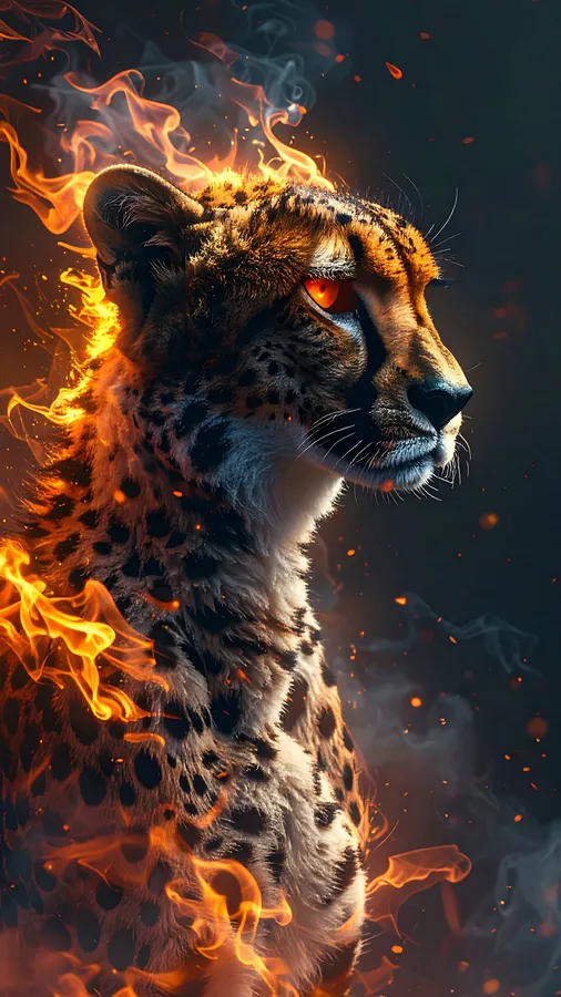Blazing Cheetah,fire Burning,fantasy,surreal Art,portrait,animal,flame