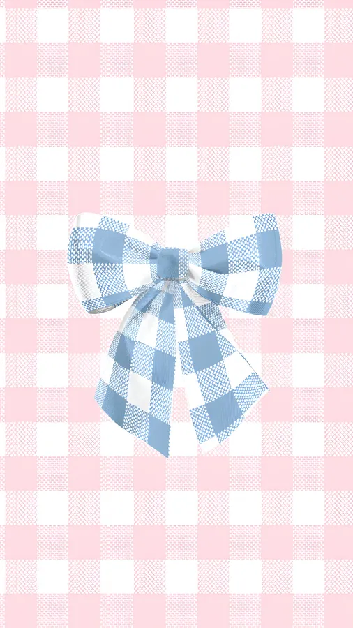 A Charming Blue Checkered Bow Set Against A Soft Pink And White Gingham Background, Perfect For Cute And Stylish Decoration Or Accessories.
