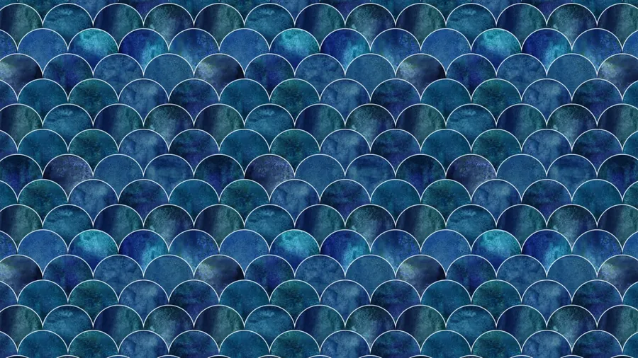 Seamless Blue Scallop Pattern With Varying Shades Creating A Textured And Elegant Design Perfect For Backgrounds And Decorative Purposes.
