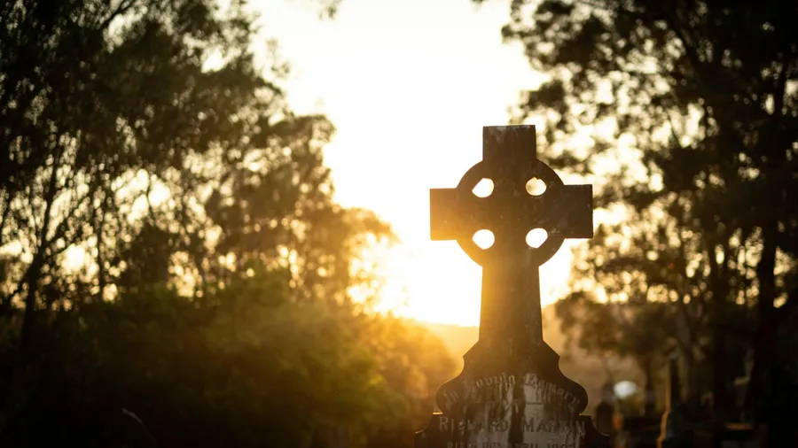 A Silhouetted Celtic Cross Stands Against A Glowing Sunset, Surrounded By Trees, Symbolizing Ancient Heritage And Spiritual Significance.