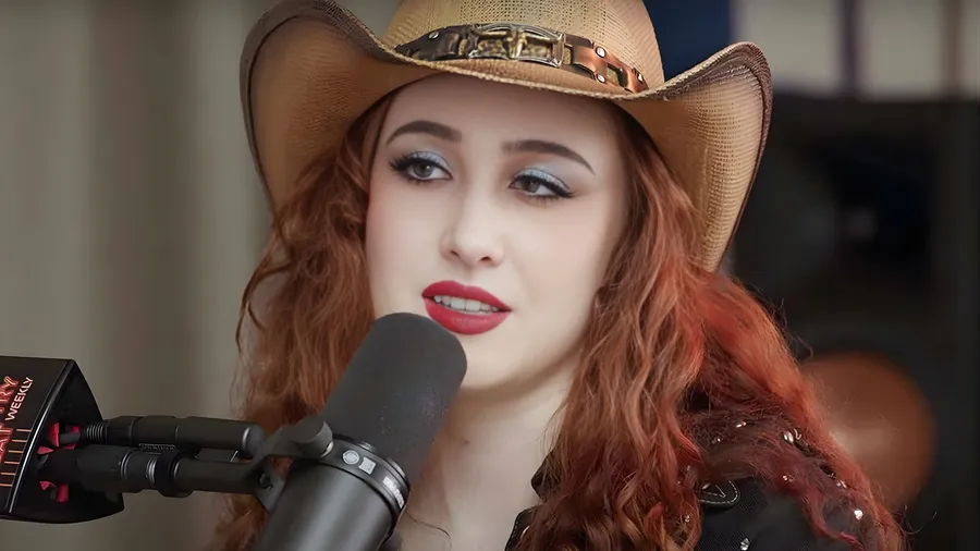 Chappell Roan Sings Passionately Into A Microphone Wearing A Cowboy Hat, Showcasing Her Unique Style And Powerful Voice During A Live Performance.