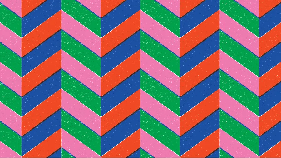 Colorful Chevron Pattern Featuring Alternating Stripes Of Blue, Green, Red, And Pink In A Repeating Zigzag Layout.