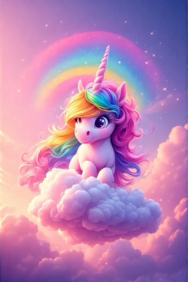 Chibi Unicorn,unicorn Wallpaper,rainbow Mane,fluffy Cloud,sparkly Pink Sky,digital Art,whimsical,dreamy,kawaii