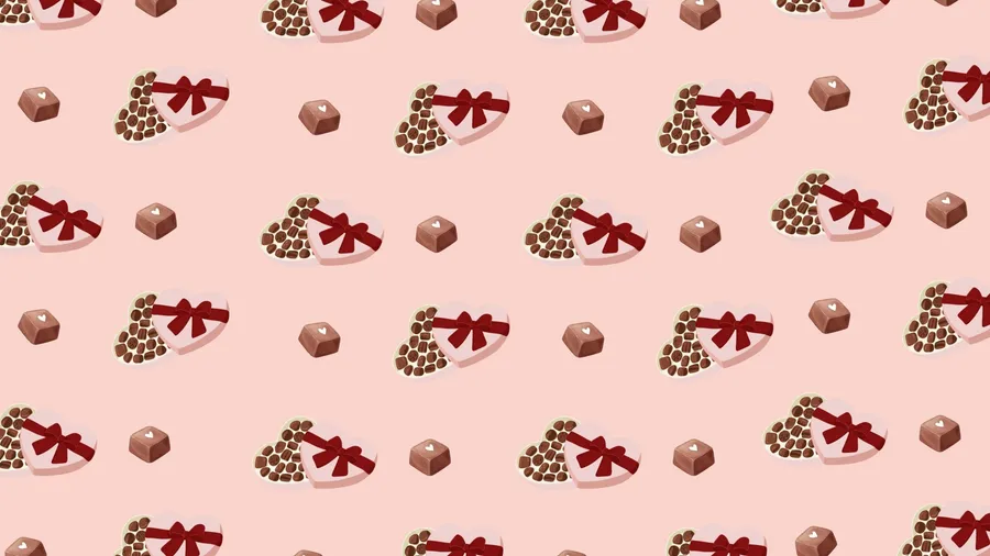 Seamless Pattern Featuring Assorted Chocolate Boxes And Candies On A Soft Pink Background, Perfect For Packaging Or Festive Designs.