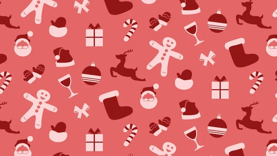 Seamless Christmas Pattern Featuring Santa, Reindeer, Gifts, Candy Canes, Gingerbread Men, And Ornaments On A Festive Red Background.