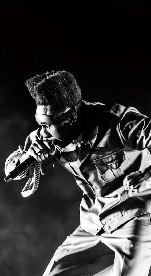 Dynamic Black And White Image Capturing A Powerful Moment From A Chromatopia Live Music Performance On Stage.