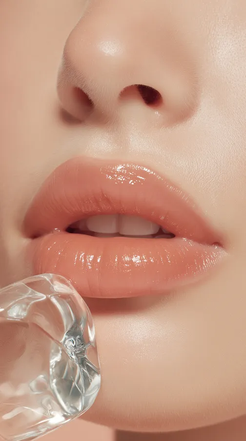 Lips,lip Gloss,ice Cube,beauty,skincare,freshness,pink,shine,close-up,sensuality,hydration,cold,cosmetic,gentle