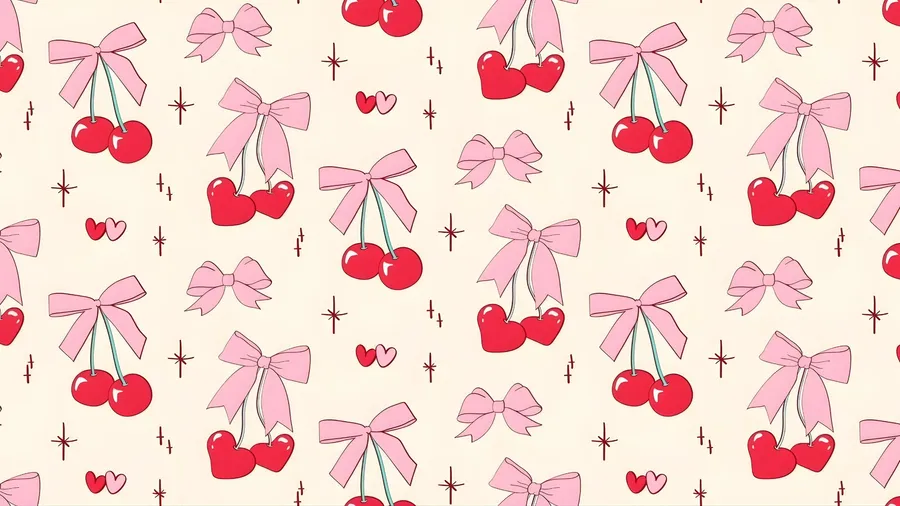 Charming Red Cherries Paired With Delicate Pink Bows Create A Playful And Sweet Design Perfect For Fashion And Decor Inspired By Coquette Cherry Style.