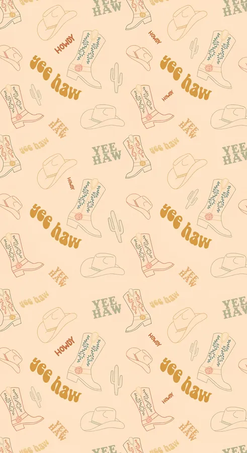 Seamless Country Western Pattern Featuring Cowboy Boots Hats And Cactus With Yee Haw Text In Soft Earth Tones