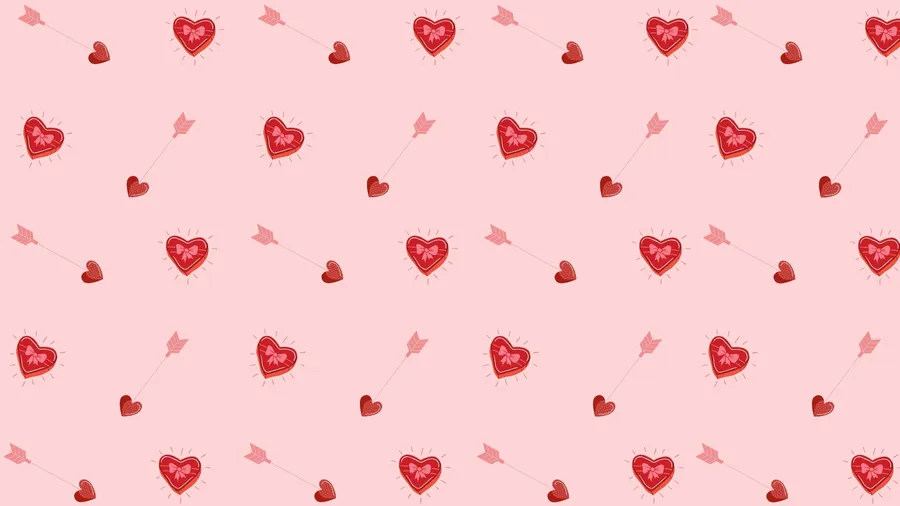 Seamless Pink Background Filled With Scattered Red Hearts Symbolizing Love And Cupid’s Arrow For Romantic Themes And Designs.