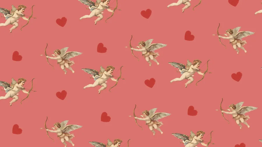 Seamless Pattern Featuring Cherubic Cupids With Bows And Arrows On A Romantic Red Background With Scattered Hearts, Perfect For Love-themed Designs And Valentine’s Day Projects.