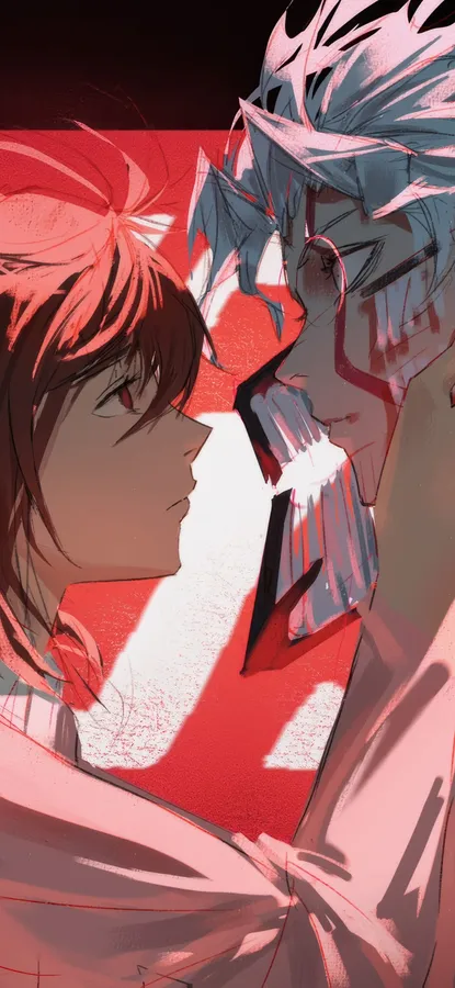 High Quality Dandadan Anime Wallpaper Featuring Intense Character Close Up, Perfect For Iphone Backgrounds With Vibrant Red And Detailed Art Style.