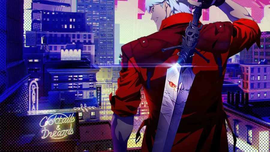 Dante Stands With His Iconic Sword Overlooking A Neon-lit City, Embodying The Stylish Action And Dark Fantasy Of Devil May Cry.