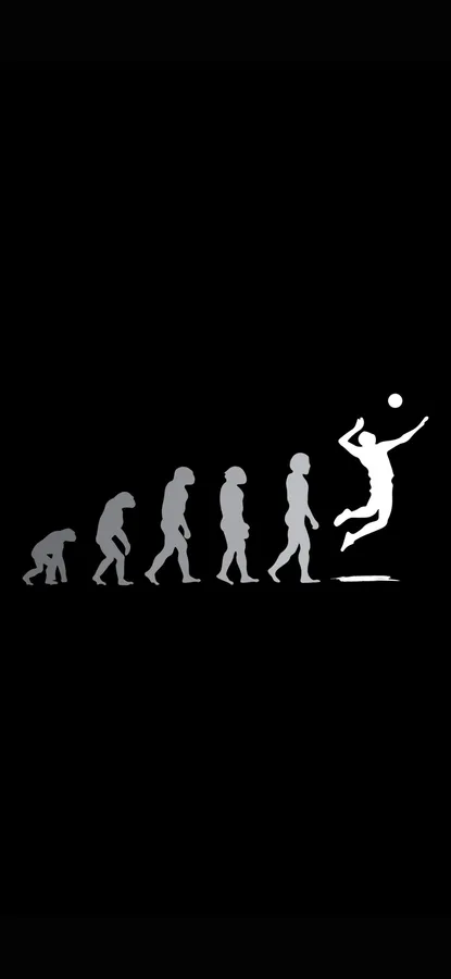 A Creative Illustration Showing Human Evolution Culminating In A Volleyball Player Jumping To Hit The Ball Against A Black Background.