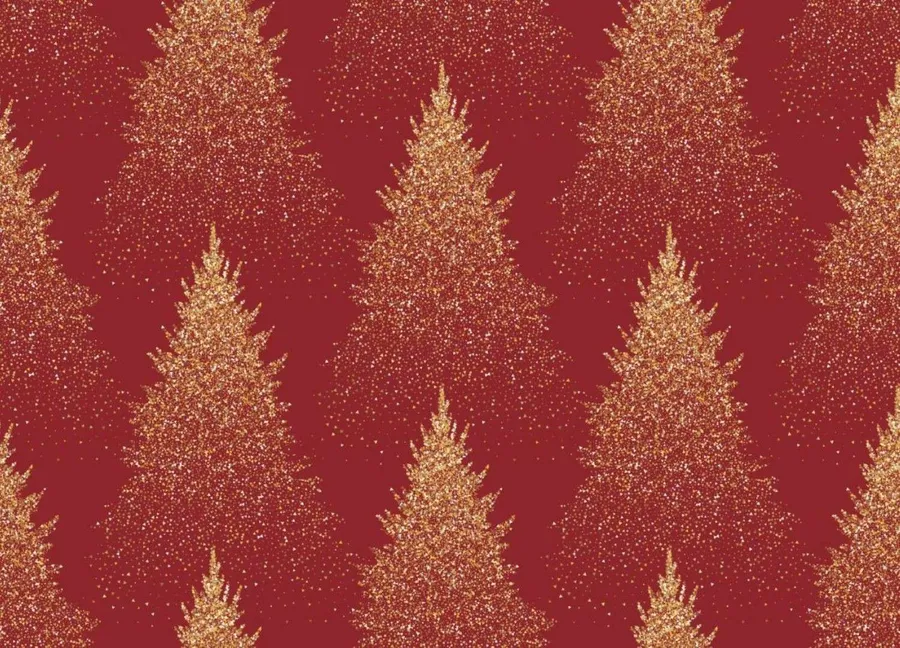 Elegant Golden Christmas Trees On A Rich Red Background Create A Festive And Luxurious Holiday Pattern Perfect For Wrapping Paper Or Seasonal Decorations.