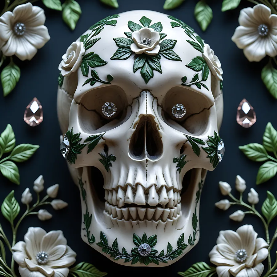 Scary,skull,crystals,leaves,green And Black,decor,gothic,mystical,fantasy,haunted,supernatural,dark Aesthetic,arcane,horror
