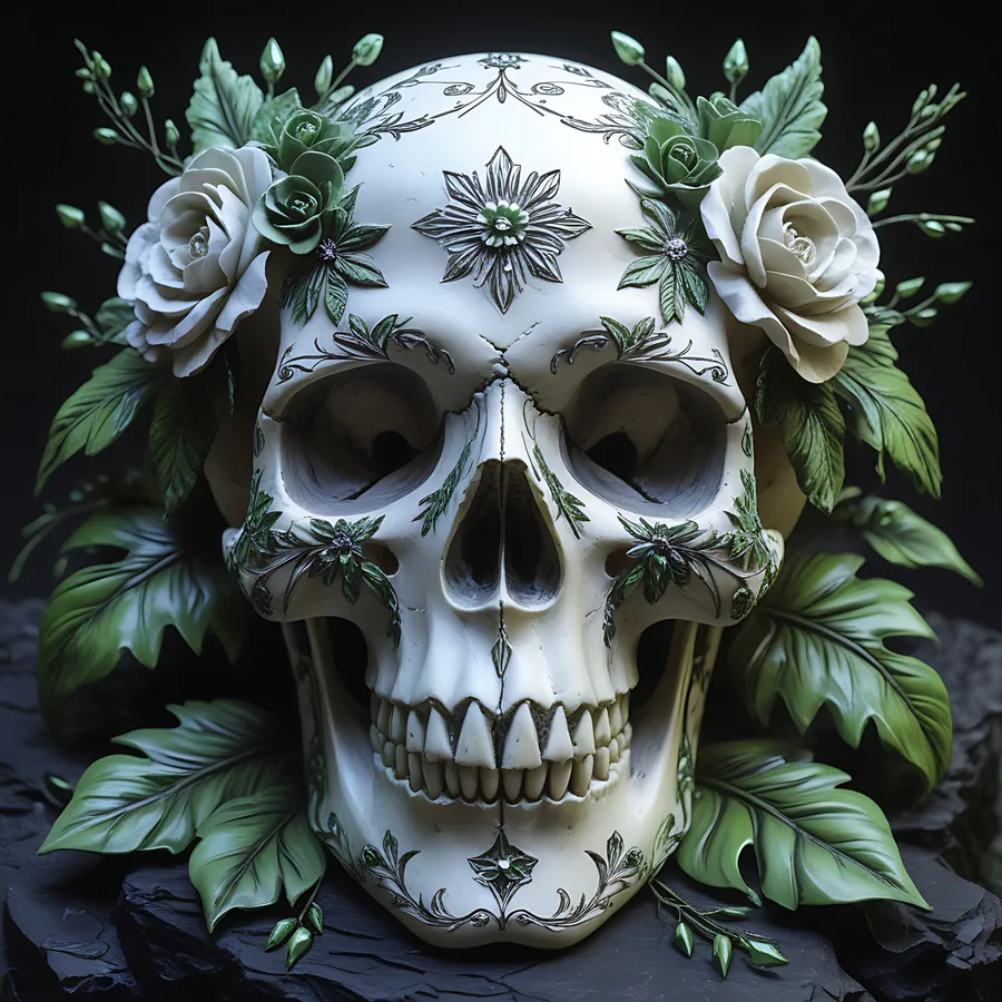 Scary,skull,crystals,leaves,green And Black,decor,gothic,mystical,fantasy,haunted,supernatural,dark Aesthetic,arcane,horror