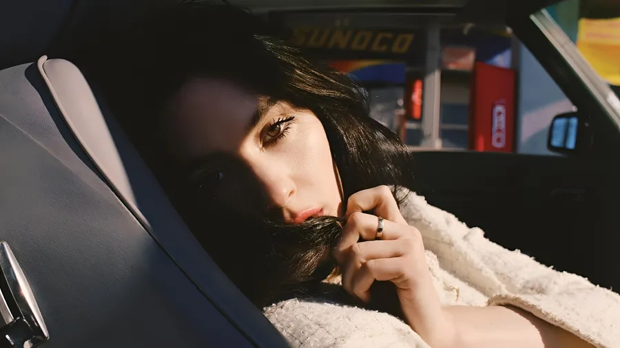 A Moody And Intimate Portrait Of Gracie Abrams Captured In Soft Natural Light, Highlighting Her Contemplative Expression And Relaxed Pose Inside A Car.