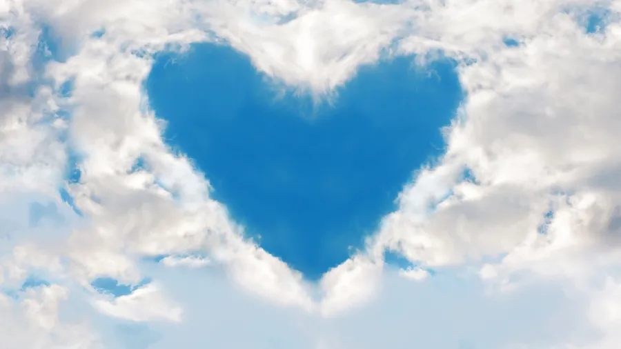 A Bright Blue Sky Features A Unique Heart Shaped Cloud Surrounded By Fluffy White Clouds, Symbolizing Love And Nature’s Beauty.