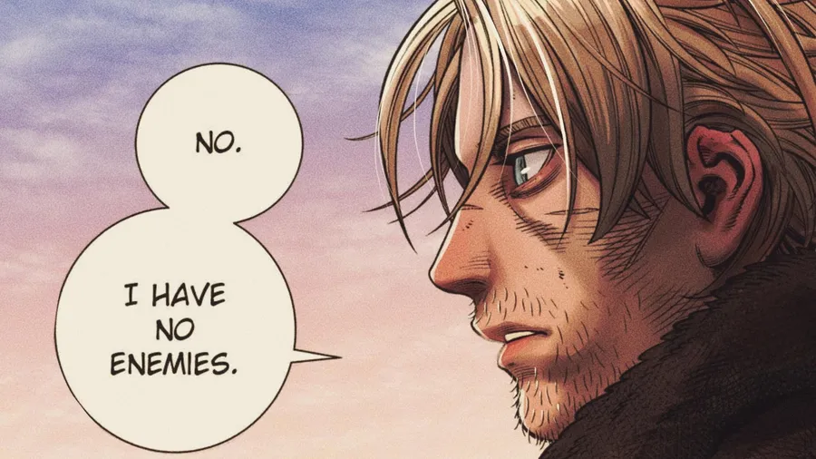 A Determined Character Declares Having No Enemies, Emphasizing Peace Or Confidence In A Tense Moment.