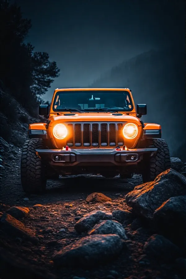 Jeep,wrangler,off-road,4x4,night,rocks,trail,adventure,4k,wallpaper,background,realistic,rendering,dramatic,lighting,vehicle