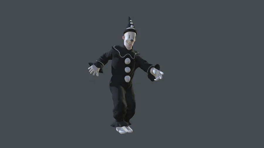 Classic Animated Character Koko The Clown In Traditional Black And White Costume With Playful Pose On Gray Background