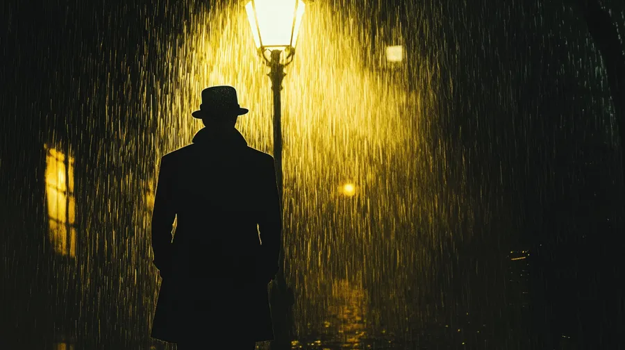 Mystery,silhouette,rain,detective,street,cinematic Background,men