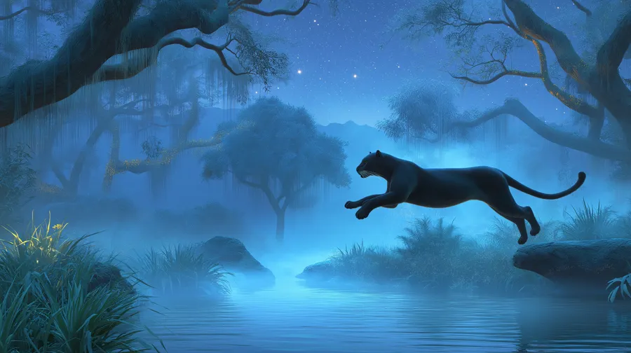 Panther,fantasy,forest,moonlight,mystical,animal,magical,dreamy,enchanted,nature,landscape,night,serene,creature,illustration