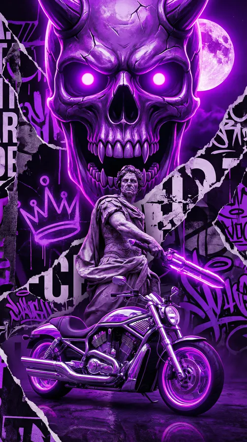 Neonvibes,cyberpunk,skullart,romanempire,purpleaesthetic,dark,digitalcollage,caesar