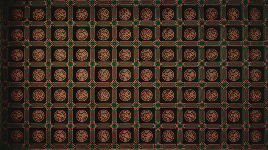 Intricate Oriental Geometric Pattern Featuring Symmetrical Shapes And Earthy Tones, Perfect For Traditional Textile Or Wallpaper Designs.
