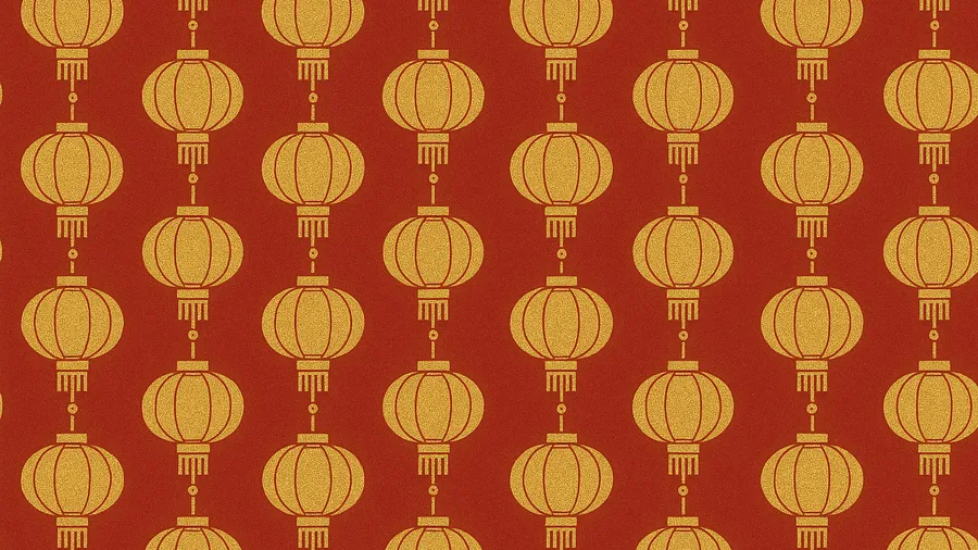 Seamless Oriental Pattern Featuring Traditional Golden Lanterns On A Rich Red Background, Symbolizing Celebration And Cultural Heritage.