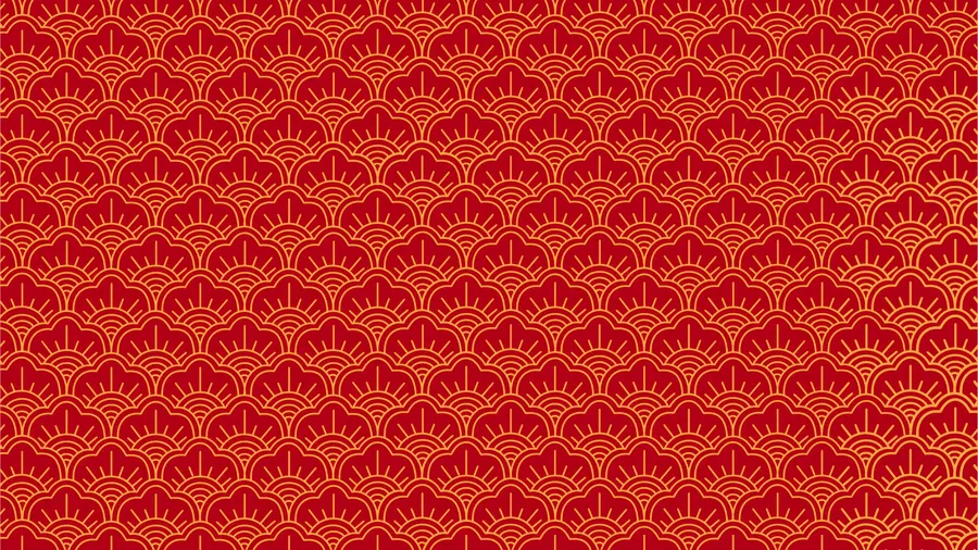 Elegant Oriental Pattern Featuring Intricate Gold Motifs On A Rich Red Background, Perfect For Traditional And Cultural Designs.