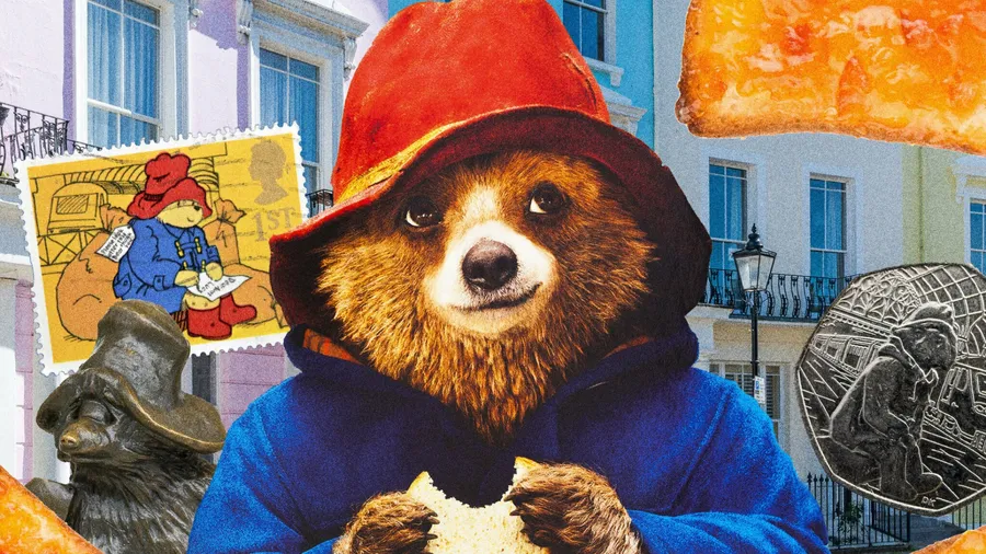 Iconic Moments From Paddington Bear Including His Red Hat, Blue Coat, And Love For Marmalade Sandwiches In A Charming London Setting.
